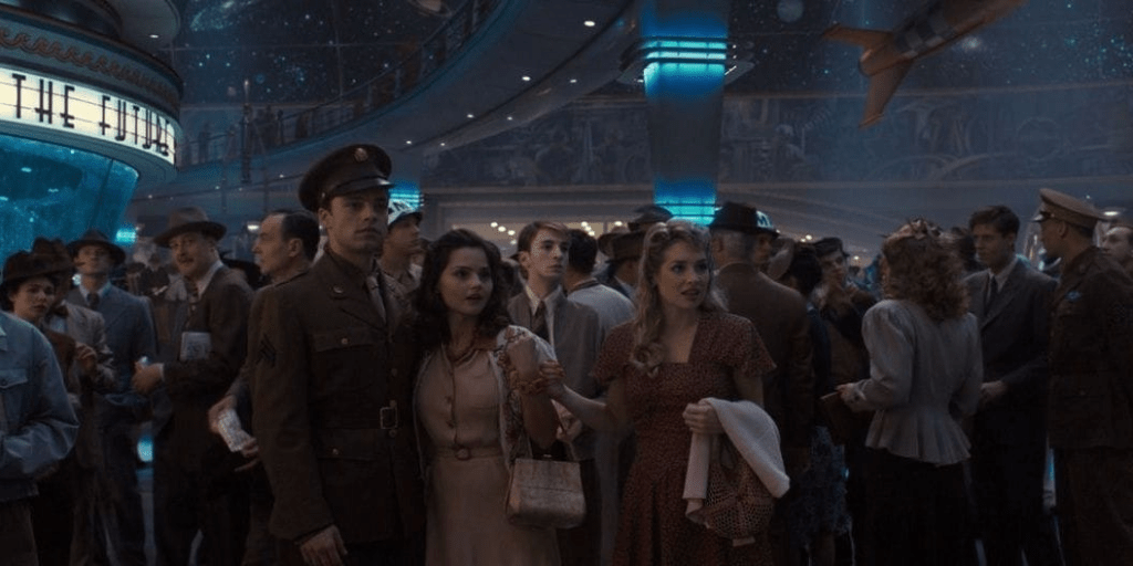 Las escenas en bases de la Fuerza Aérea, naves espaciales o laboratorios remiten a un diseño utilitario y austero, donde lo decorativo desaparece. Incluso la Tierra de los 90 se presenta con una estética más culturalmente pop que artística: Blockbuster, internet viejo, mapas, archivos, camisetas y referencias noventeras. El paisaje visual está más cerca de la cultura de masas que del arte formal.